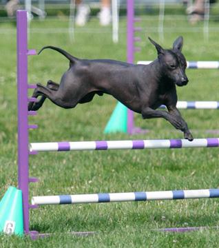 …FROM BARBARA GRIFFIN, “Here is the picture I chose for Baalche’s award as the AKC’s Top Agility Xolo for 2012. His picture and the pictures of the other top agility dogs of their breed will be shown at the banquet at the Invitational. I am so proud of my little buddy! CH Baalche (Hoover) RN MX MXJ NAP NJP OF