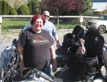 …and here they are, all buttoned up and ready to hit the road again……….Xolos safely and comfortably in their special carriers.