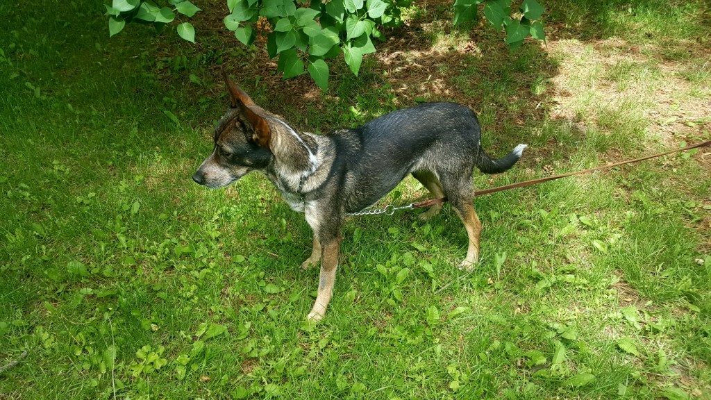 ATEMOC birthdate 12/1/12. 8.5 years old. Coatted male. Intermediate. 26 pounds. Happy good boy. Very smart. Needs wood fence. Can climb chainlink. Excellent on leash. Loves to run & go for walks. Neutered, crate trained. posted June 12.