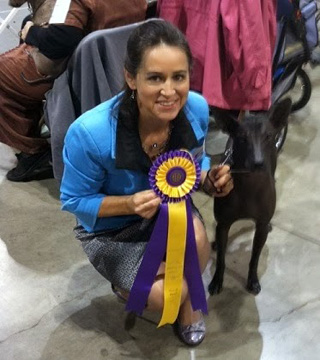 …Besitos Munequita, owned and handled by Teresa Vila, is now an AKC Champion!!!!!!!!!!!!!!!! Bravo for Teresa and her standard hairless female Xolo, Munequita. We are so proud of you girls.